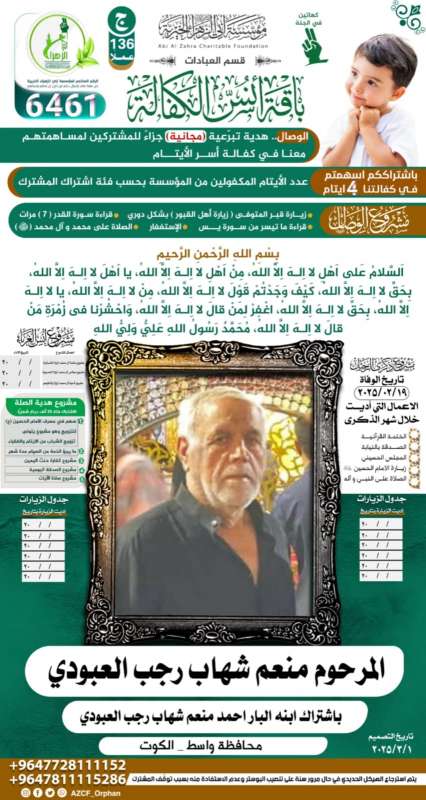 اللهم ارحم ( منعم ابن صبريه ) وانس وحشته واجمعنا به في جنتك ، اللهم ارحمه بقدر شوقنا له اللهم ارحمه واغفر له .