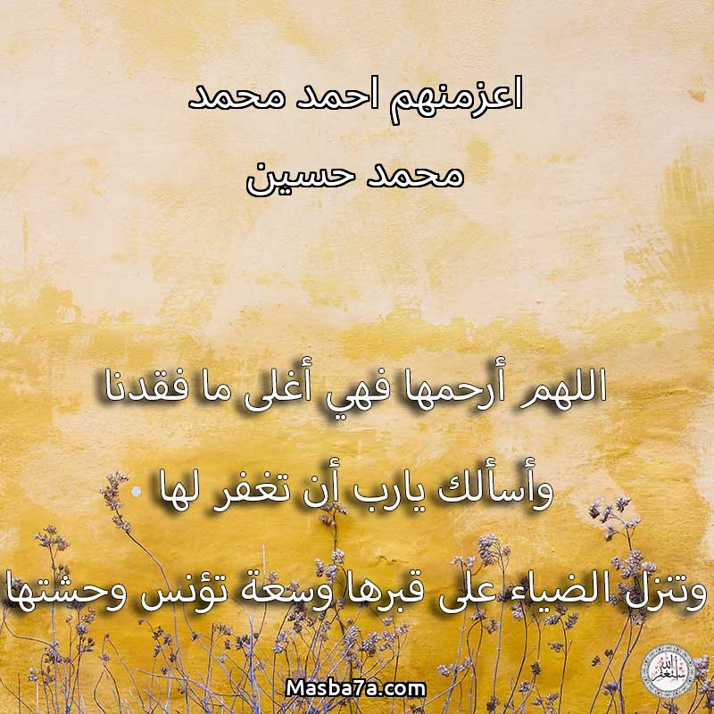 اللهم ارحم ( اعزمنهم احمد محمد محمد حسين ) وانس وحشتها واجمعنا بها في جنتك ، اللهم ارحمها بقدر شوقنا لها اللهم ارحمها واغفر لها .