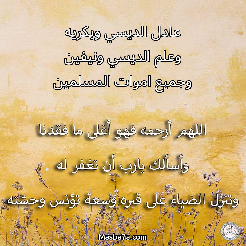 دعاء عن روح المرحوم عادل الديسي وبكريه وعلم الديسي ونيفين وجميع اموات المسلمين