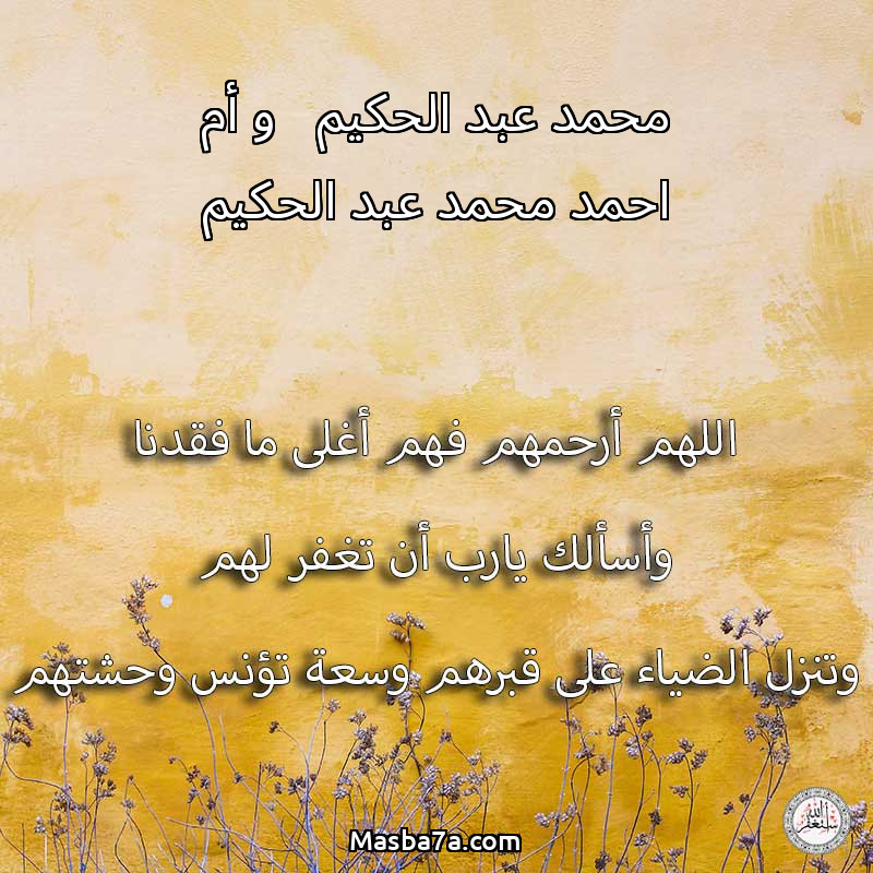 اللهم ارحم ( محمد عبد الحكيم - و أم احمد محمد عبد الحكيم ) وانس وحشتهم واجمعنا بهم في جنتك ، اللهم ارحمهم بقدر شوقنا لهم اللهم ارحمهم واغفر لهم.