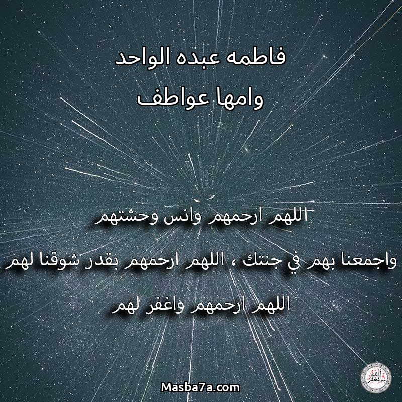 اللهم ارحم ( فاطمه عبده الواحد وامها عواطف ) وانس وحشتهم واجمعنا بهم في جنتك ، اللهم ارحمهم بقدر شوقنا لهم اللهم ارحمهم واغفر لهم.