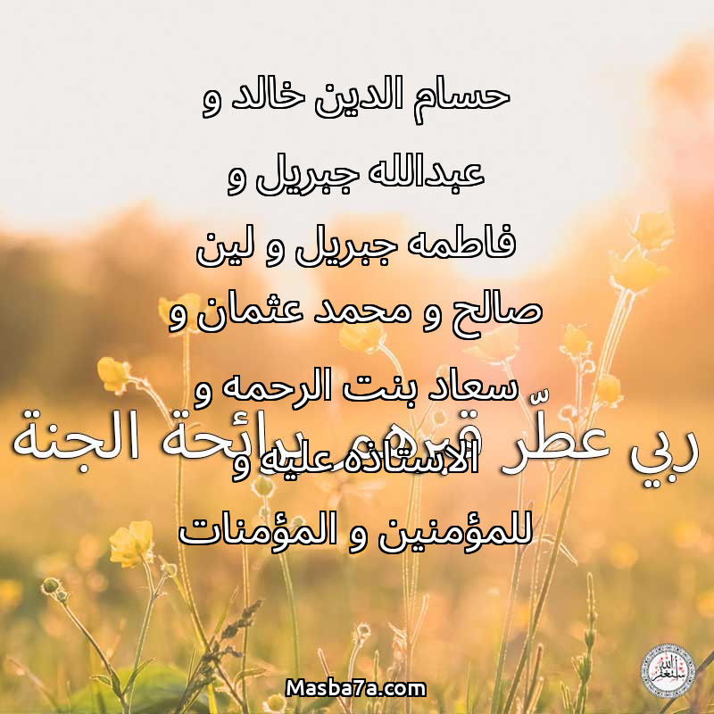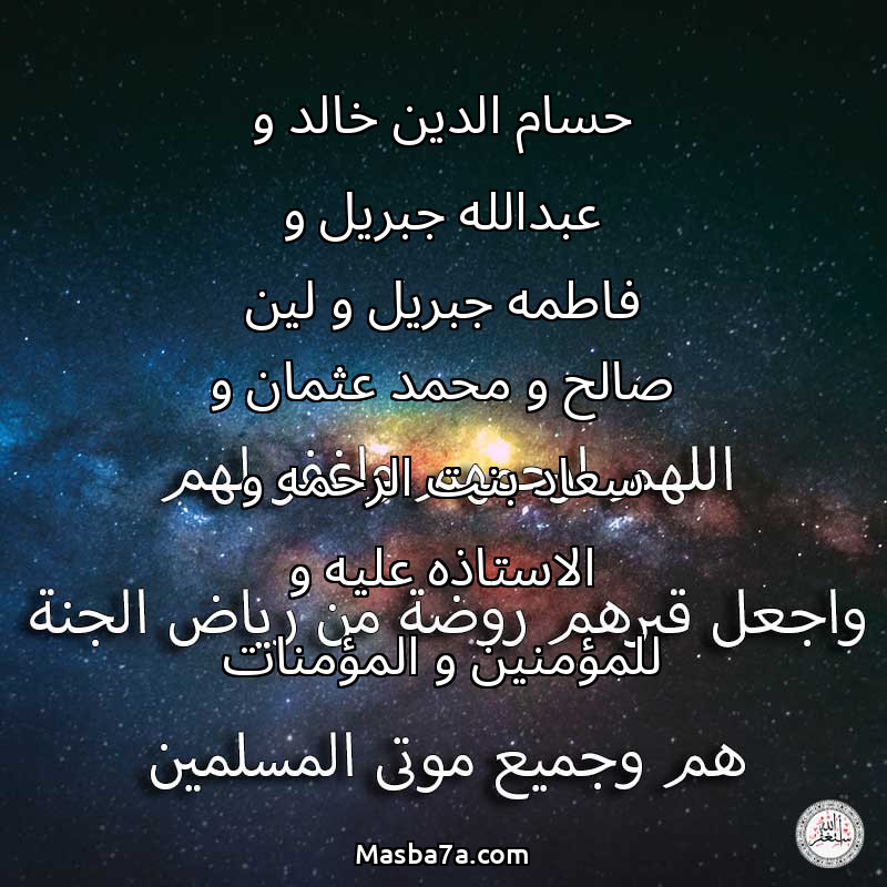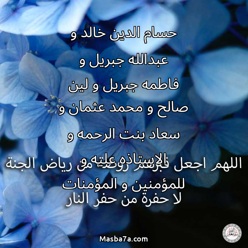 دعاء عن أرواح المرحومين حسام الدين خالد و عبدالله جبريل و فاطمه جبريل و لين صالح و محمد عثمان و سعاد بنت الرحمه و الاستاذه عليه و للمؤمنين و المؤمنات