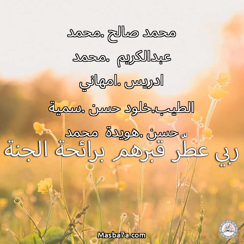 دعاء عن أرواح المرحومين محمد صالح .محمد عبدالكريم .محمد ادريس .امهاني الطيب.خلود حسن .سمية حسن .هويدة محمد