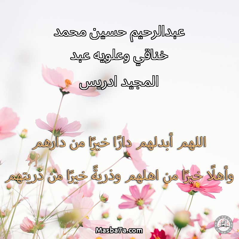 دعاء عن أرواح المرحومين عبدالرحيم حسين محمد خناقي وعلويه عبد المجيد ادريس