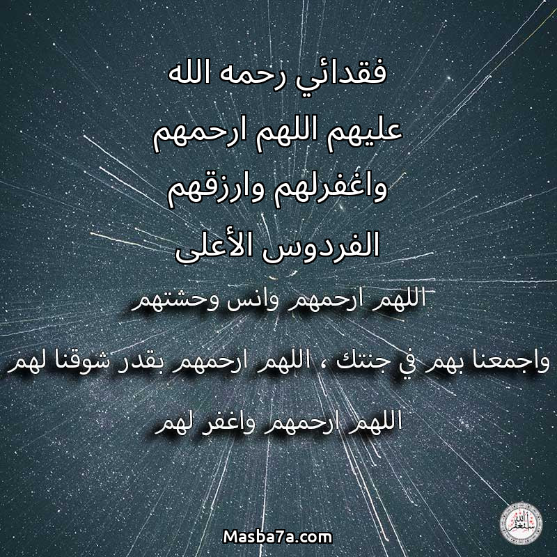 اللهم ارحم ( فقدائي رحمه الله عليهم اللهم ارحمهم واغفرلهم وارزقهم الفردوس الأعلى ) وانس وحشتهم واجمعنا بهم في جنتك ، اللهم ارحمهم بقدر شوقنا لهم اللهم ارحمهم واغفر لهم.