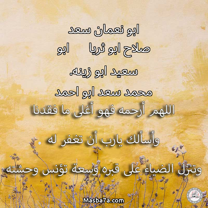 اللهم ارحم ( ابو نعمان سعد صلاح ابو ثريا ابو سعيد ابو زينه. محمد سعد ابو احمد ) وانس وحشته واجمعنا به في جنتك ، اللهم ارحمه بقدر شوقنا له اللهم ارحمه واغفر له .