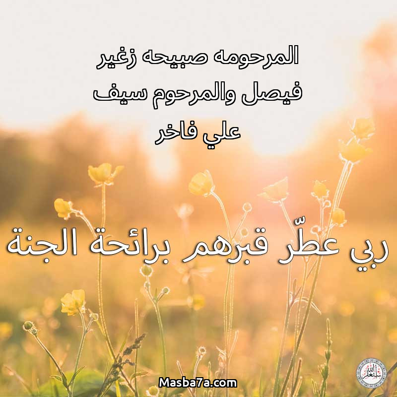اللهم ارحم ( المرحومه صبيحه زغير فيصل والمرحوم سيف علي فاخر ) وانس وحشتهم واجمعنا بهم في جنتك ، اللهم ارحمهم بقدر شوقنا لهم اللهم ارحمهم واغفر لهم.