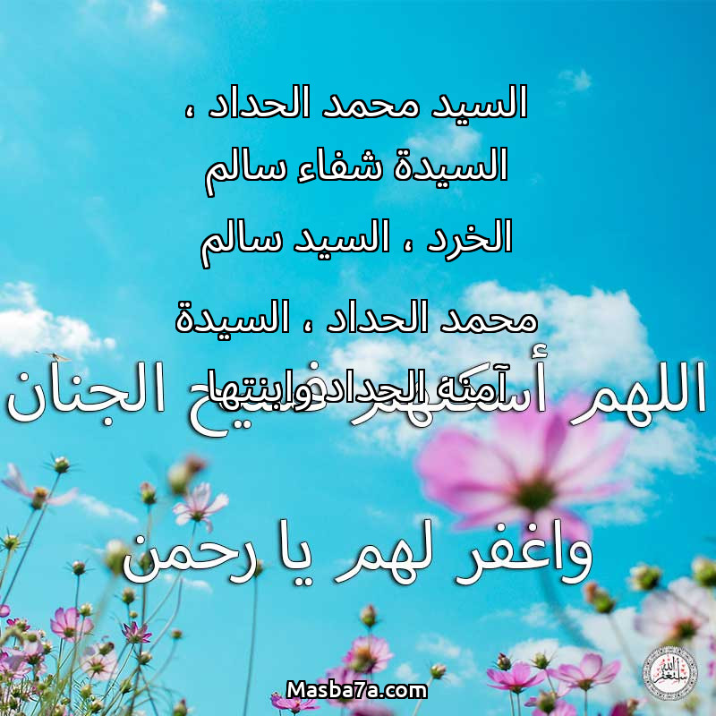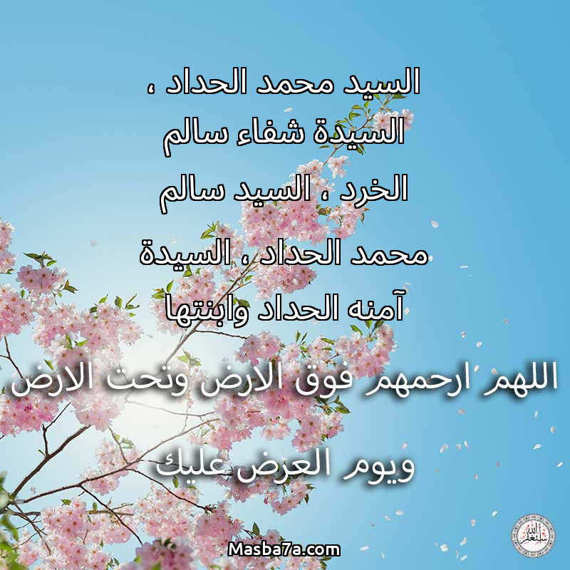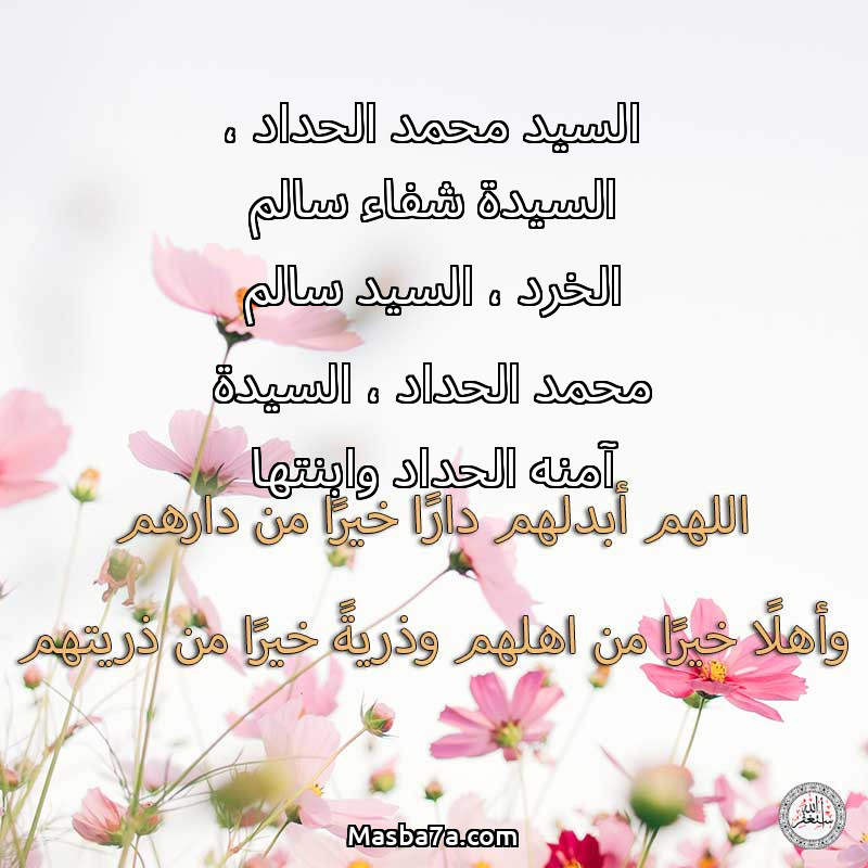 دعاء عن أرواح المرحومين السيد محمد الحداد ، السيدة شفاء سالم الخرد ، السيد سالم محمد الحداد ، السيدة آمنه الحداد وابنتها