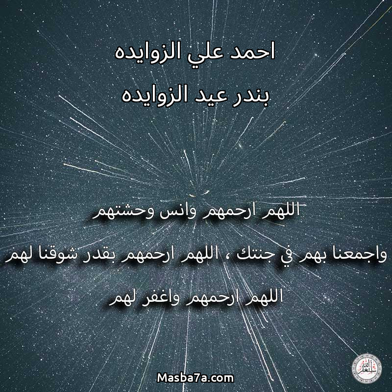 اللهم ارحم ( احمد علي الزوايده بندر عيد الزوايده ) وانس وحشتهم واجمعنا بهم في جنتك ، اللهم ارحمهم بقدر شوقنا لهم اللهم ارحمهم واغفر لهم.