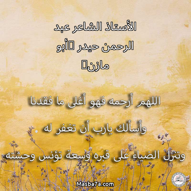 دعاء عن روح المرحوم الأستاذ الشاعر عبد الرحمن حيدر (أبو مازن)
