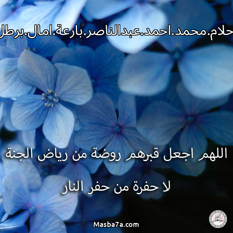 اللهم ارحم ( احلام.محمد.احمد.عبدالناصر.بارعة.امال.برطل ) وانس وحشتهم واجمعنا بهم في جنتك ، اللهم ارحمهم بقدر شوقنا لهم اللهم ارحمهم واغفر لهم.