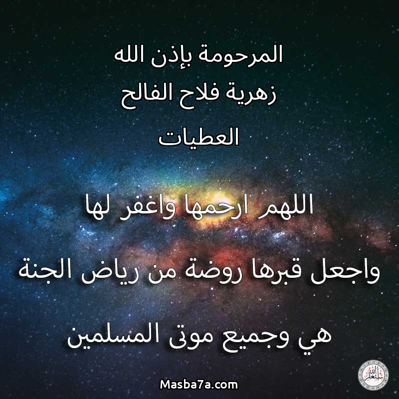 دعاء عن روح المرحومة المرحومة بإذن الله زهرية فلاح الفالح العطيات