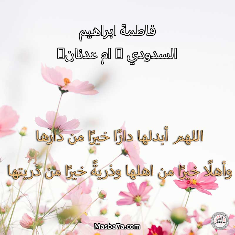 اللهم ارحم ( فاطمة ابراهيم السدودي ( ام عدنان) ) وانس وحشتها واجمعنا بها في جنتك ، اللهم ارحمها بقدر شوقنا لها اللهم ارحمها واغفر لها .