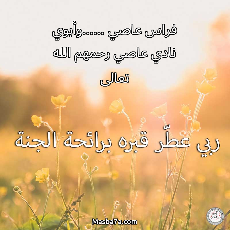اللهم ارحم ( فراس عاصي ......وأبوي نادي عاصي رحمهم الله تعالى ) وانس وحشته واجمعنا به في جنتك ، اللهم ارحمه بقدر شوقنا له اللهم ارحمه واغفر له .