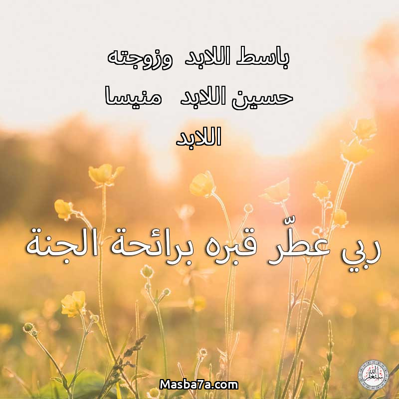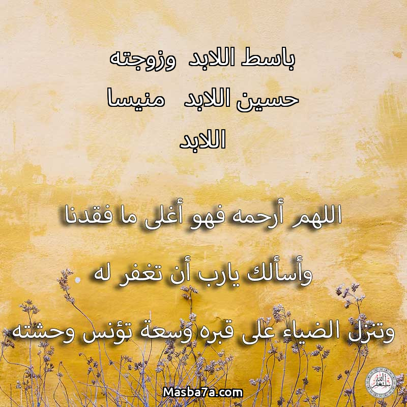 اللهم ارحم ( باسط اللابد وزوجته حسين اللابد منيسا اللابد ) وانس وحشته واجمعنا به في جنتك ، اللهم ارحمه بقدر شوقنا له اللهم ارحمه واغفر له .