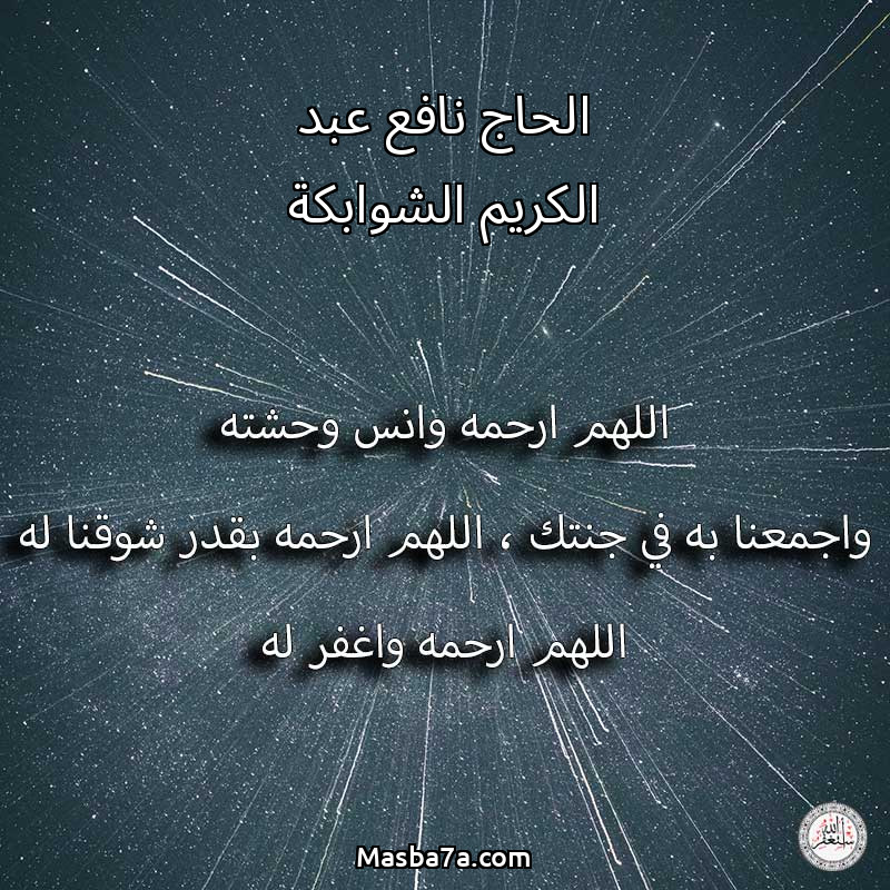 اللهم ارحم ( الحاج نافع عبد الكريم الشوابكة ) وانس وحشته واجمعنا به في جنتك ، اللهم ارحمه بقدر شوقنا له اللهم ارحمه واغفر له .
