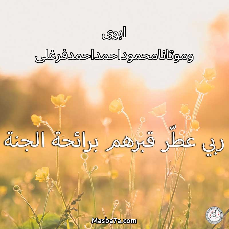 اللهم ارحم ( ابوى وموتانامحموداحمداحمدفرغلى ) وانس وحشتهم واجمعنا بهم في جنتك ، اللهم ارحمهم بقدر شوقنا لهم اللهم ارحمهم واغفر لهم.