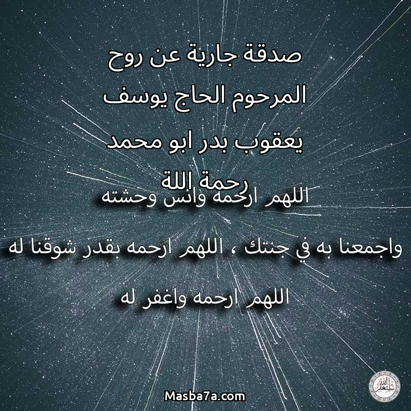 دعاء عن روح المرحوم صدقة جارية عن روح المرحوم الحاج يوسف يعقوب بدر ابو محمد رحمة اللة