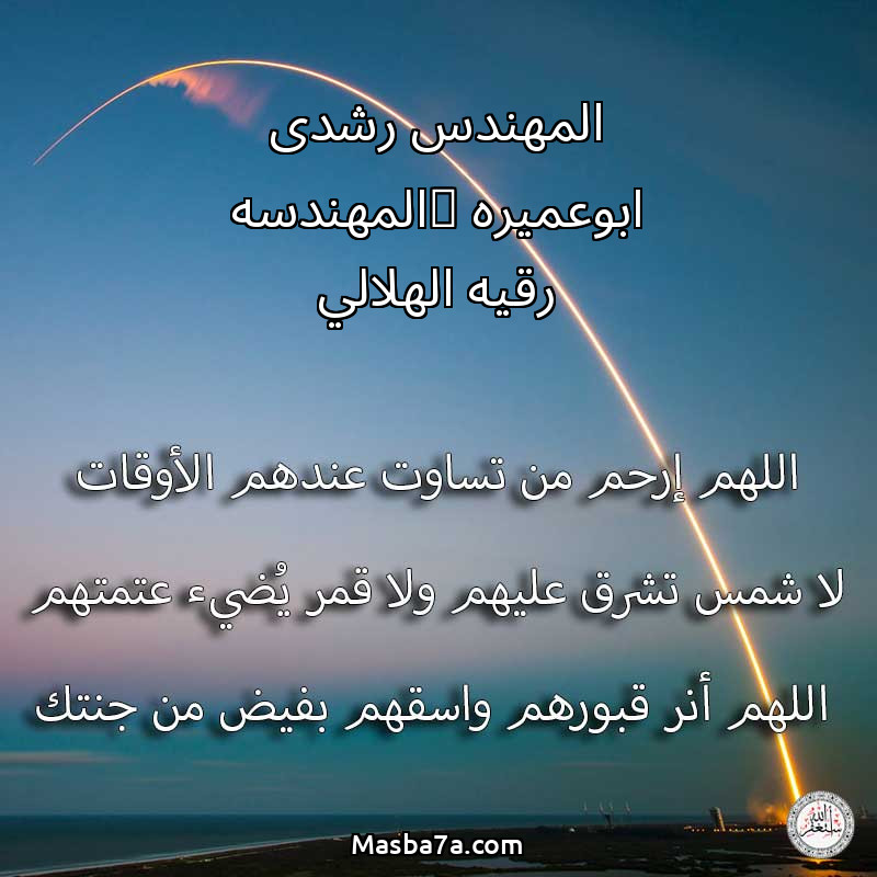 اللهم ارحم ( المهندس رشدى ابوعميره _المهندسه رقيه الهلالي ) وانس وحشته واجمعنا به في جنتك ، اللهم ارحمه بقدر شوقنا له اللهم ارحمه واغفر له .