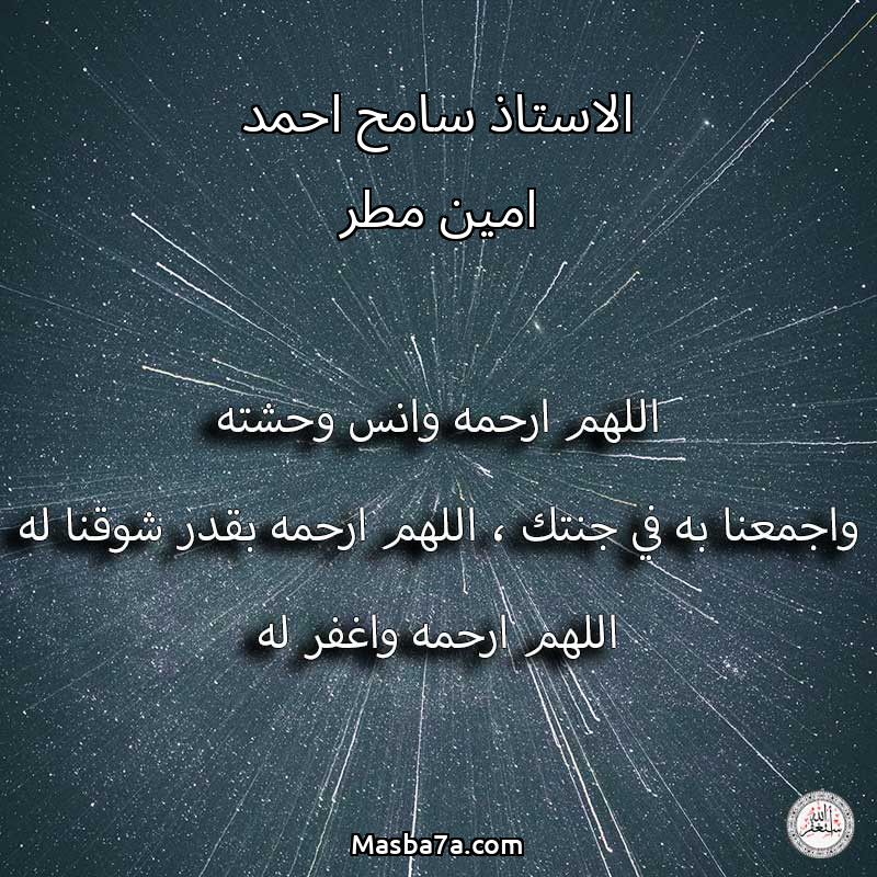 اللهم ارحم ( الاستاذ سامح احمد امين مطر ) وانس وحشته واجمعنا به في جنتك ، اللهم ارحمه بقدر شوقنا له اللهم ارحمه واغفر له .