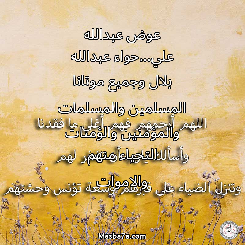 دعاء عن أرواح المرحومين عوض عبدالله علي...حواء عبدالله بلال وجميع موتانا المسلمين والمسلمات والمؤمنين والؤمنات التحياء منهم والاموات