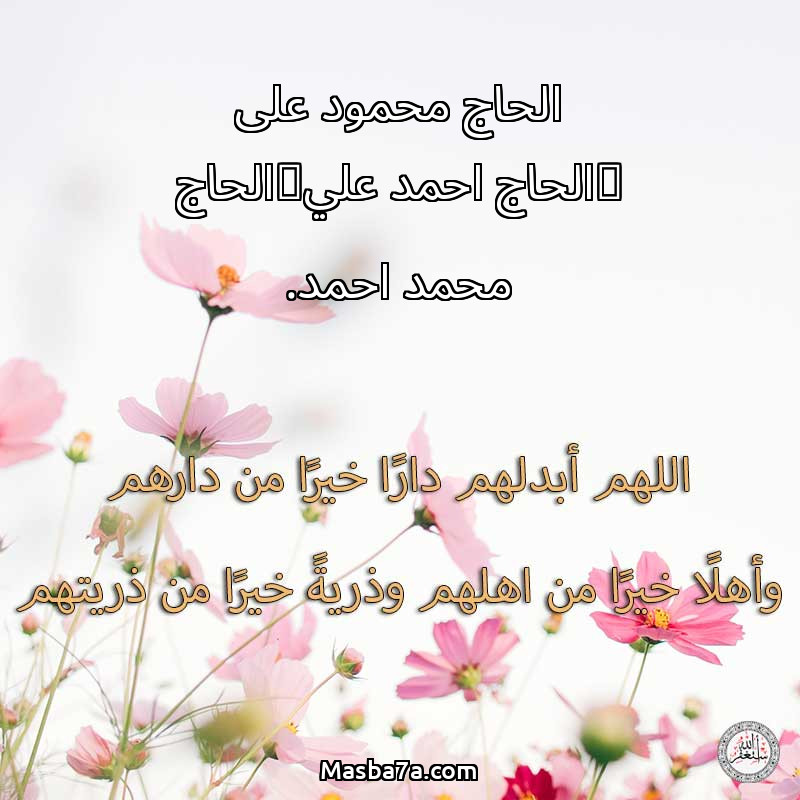 اللهم ارحم ( الحاج محمود على _الحاج احمد علي_الحاج محمد احمد. ) وانس وحشتهم واجمعنا بهم في جنتك ، اللهم ارحمهم بقدر شوقنا لهم اللهم ارحمهم واغفر لهم.