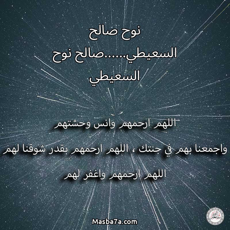 اللهم ارحم ( نوح صالح السعيطي......صالح نوح السعيطي ) وانس وحشتهم واجمعنا بهم في جنتك ، اللهم ارحمهم بقدر شوقنا لهم اللهم ارحمهم واغفر لهم.