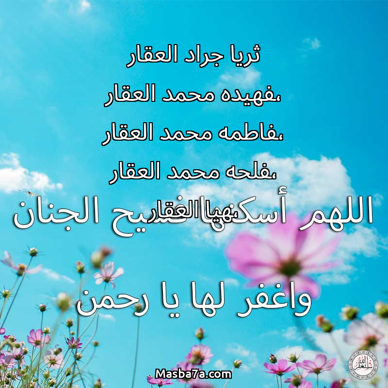 دعاء عن روح المرحومة ثريا جراد العقار ،فهيده محمد العقار ،فاطمه محمد العقار ،فلحه محمد العقار ،هيا العقار