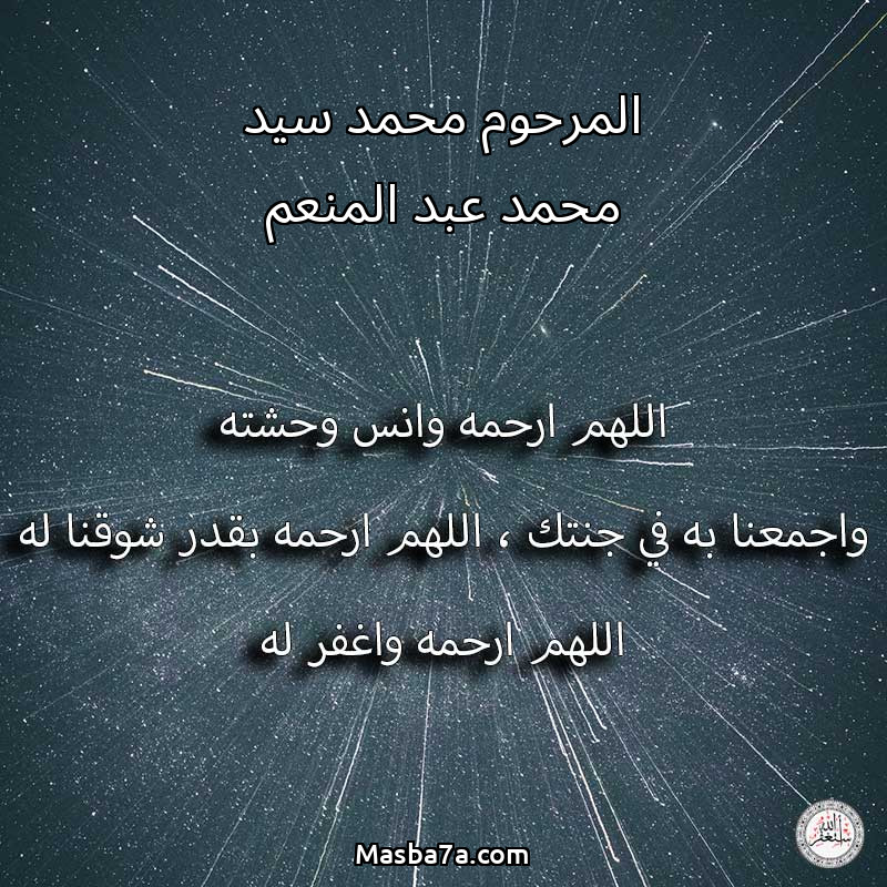 اللهم ارحم ( المرحوم محمد سيد محمد عبد المنعم ) وانس وحشته واجمعنا به في جنتك ، اللهم ارحمه بقدر شوقنا له اللهم ارحمه واغفر له .