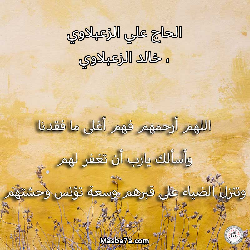 اللهم ارحم ( الحاج علي الزعبلاوي ، خالد الزعبلاوي ) وانس وحشتهم واجمعنا بهم في جنتك ، اللهم ارحمهم بقدر شوقنا لهم اللهم ارحمهم واغفر لهم.