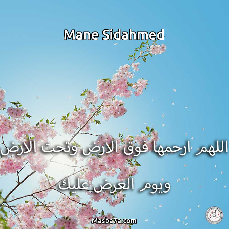 اللهم ارحم ( Mane Sidahmed ) وانس وحشتها واجمعنا بها في جنتك ، اللهم ارحمها بقدر شوقنا لها اللهم ارحمها واغفر لها .