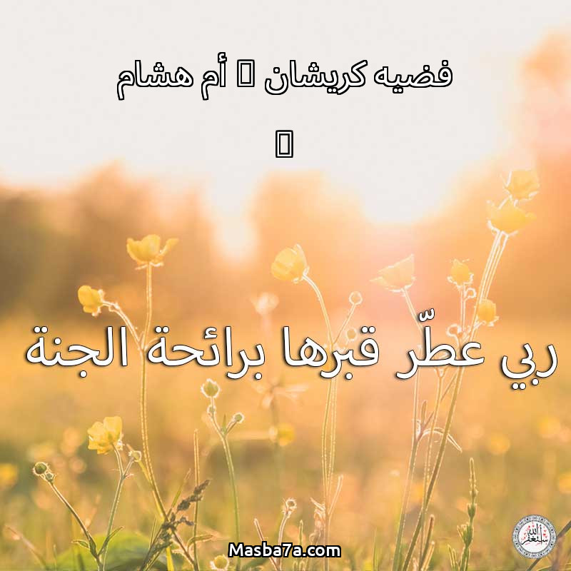 اللهم ارحم ( فضيه كريشان ( أم هشام ) ) وانس وحشتها واجمعنا بها في جنتك ، اللهم ارحمها بقدر شوقنا لها اللهم ارحمها واغفر لها .