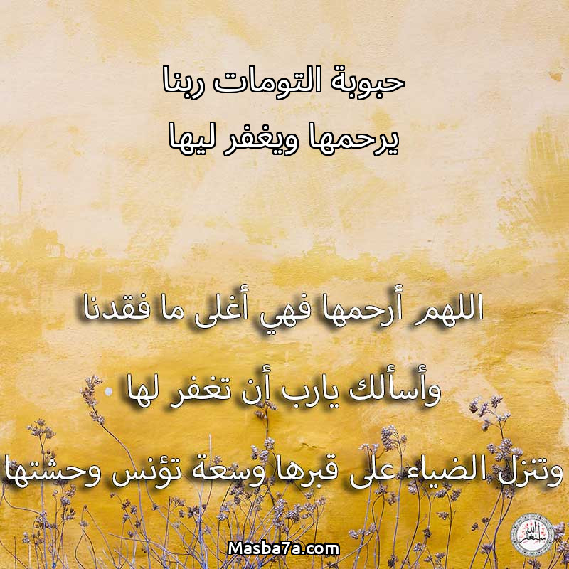 اللهم ارحم ( حبوبة التومات ربنا يرحمها ويغفر ليها ) وانس وحشتها واجمعنا بها في جنتك ، اللهم ارحمها بقدر شوقنا لها اللهم ارحمها واغفر لها .