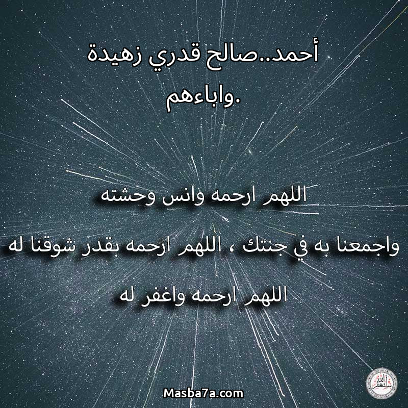 اللهم ارحم ( أحمد..صالح قدري زهيدة .واباءهم ) وانس وحشته واجمعنا به في جنتك ، اللهم ارحمه بقدر شوقنا له اللهم ارحمه واغفر له .