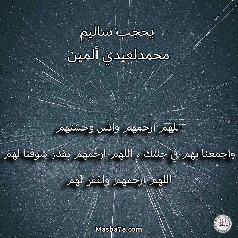 اللهم ارحم ( يحجب ساليم محمدلعيدي ألمين ) وانس وحشتهم واجمعنا بهم في جنتك ، اللهم ارحمهم بقدر شوقنا لهم اللهم ارحمهم واغفر لهم.