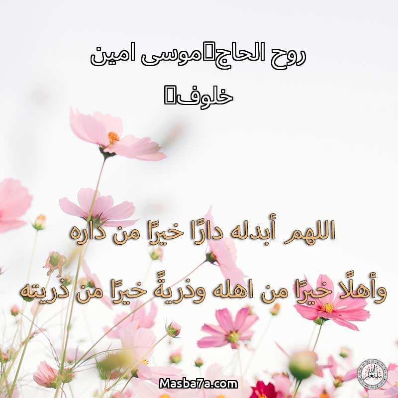 اللهم ارحم ( روح الحاج(موسى امين خلوف) ) وانس وحشته واجمعنا به في جنتك ، اللهم ارحمه بقدر شوقنا له اللهم ارحمه واغفر له .
