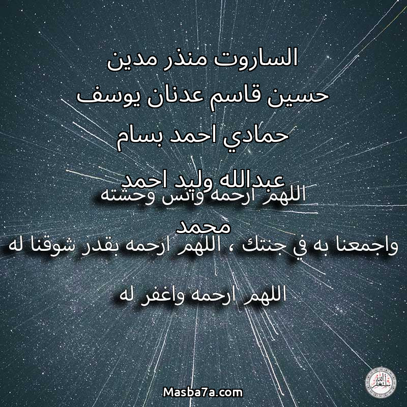 دعاء عن روح المرحوم الساروت منذر مدين حسين قاسم عدنان يوسف حمادي احمد بسام عبدالله وليد احمد محمد