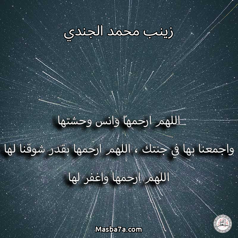 اللهم ارحم ( زينب محمد الجندي ) وانس وحشتها واجمعنا بها في جنتك ، اللهم ارحمها بقدر شوقنا لها اللهم ارحمها واغفر لها .