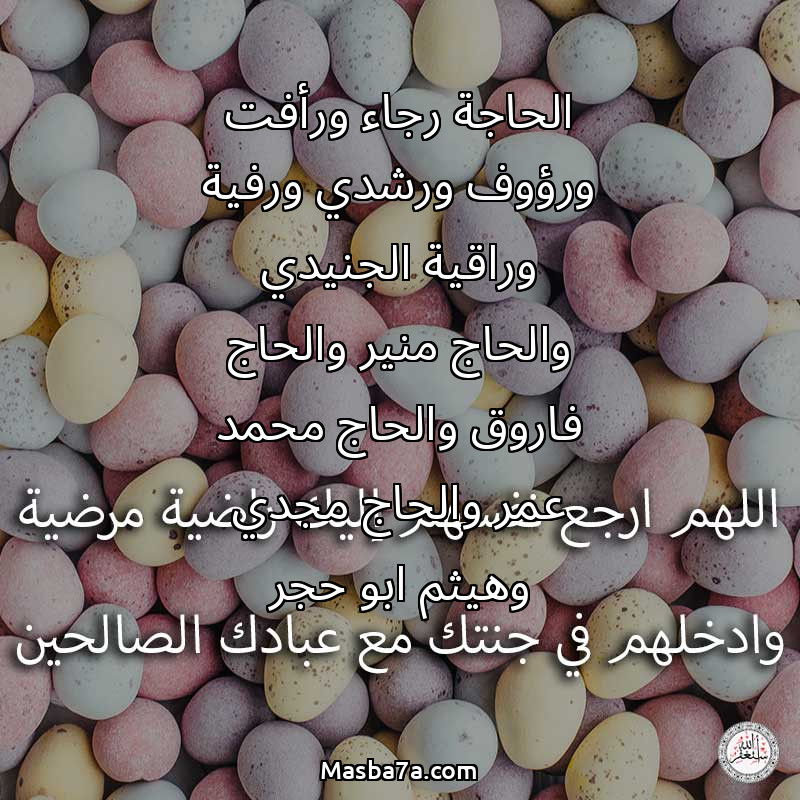 اللهم ارحم ( الحاجة رجاء ورأفت ورؤوف ورشدي ورفية وراقية الجنيدي والحاج منير والحاج فاروق والحاج محمد عمر والحاج مجدي وهيثم ابو حجر ) وانس وحشتهم واجمعنا بهم في جنتك ، اللهم ارحمهم بقدر شوقنا لهم اللهم ارحمهم واغفر لهم.