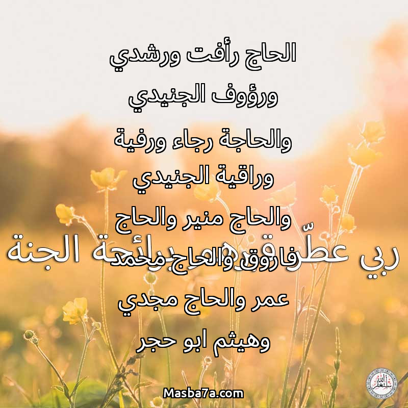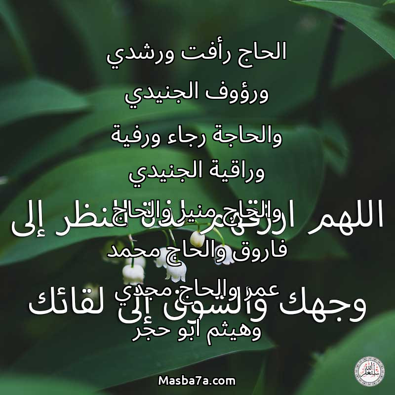 دعاء عن أرواح المرحومين الحاج رأفت ورشدي ورؤوف الجنيدي والحاجة رجاء ورفية وراقية الجنيدي والحاج منير والحاج فاروق والحاج محمد عمر والحاج مجدي وهيثم ابو حجر