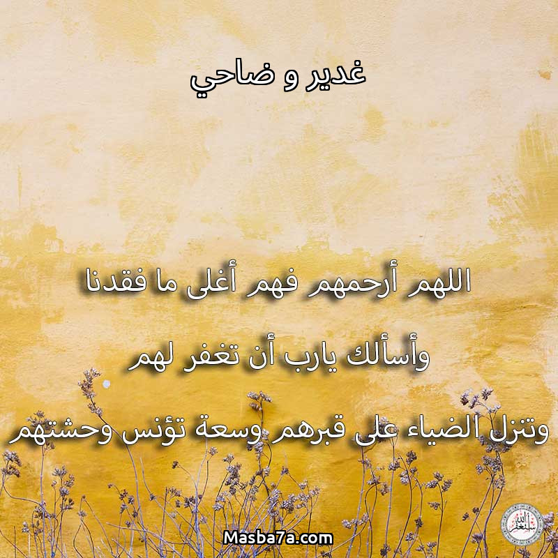 اللهم ارحم ( غدير و ضاحي ) وانس وحشتهم واجمعنا بهم في جنتك ، اللهم ارحمهم بقدر شوقنا لهم اللهم ارحمهم واغفر لهم.