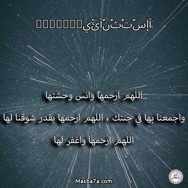 اللهم ارحم ( آإسہٰتہٰثہٰنہٰآئہي’ ئہي’ مٓ حَ مَ د ) وانس وحشتها واجمعنا بها في جنتك ، اللهم ارحمها بقدر شوقنا لها اللهم ارحمها واغفر لها .