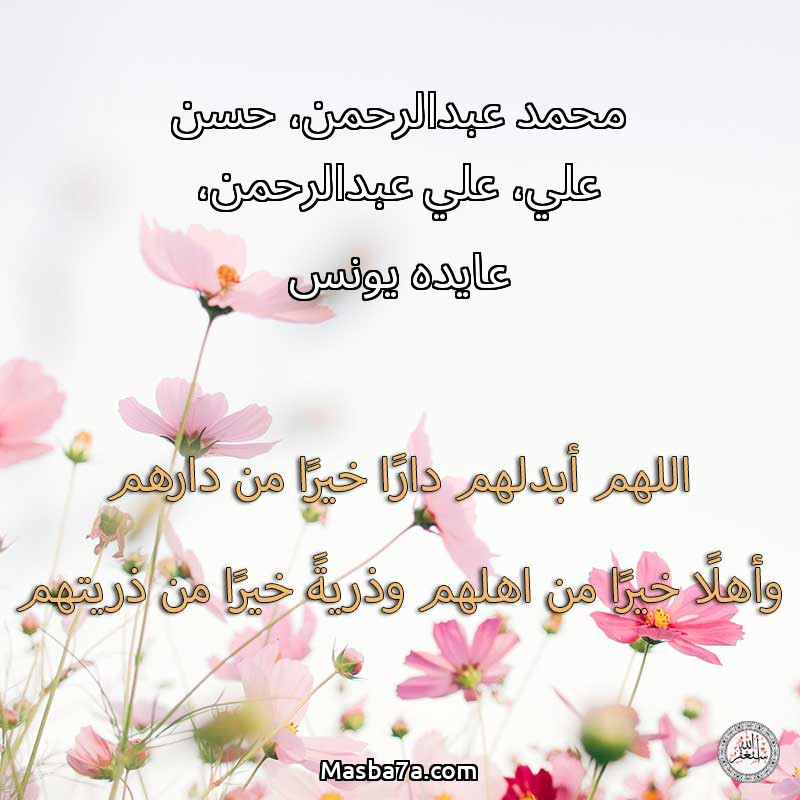 اللهم ارحم ( محمد عبدالرحمن، حسن علي، علي عبدالرحمن، عايده يونس ) وانس وحشتهم واجمعنا بهم في جنتك ، اللهم ارحمهم بقدر شوقنا لهم اللهم ارحمهم واغفر لهم.