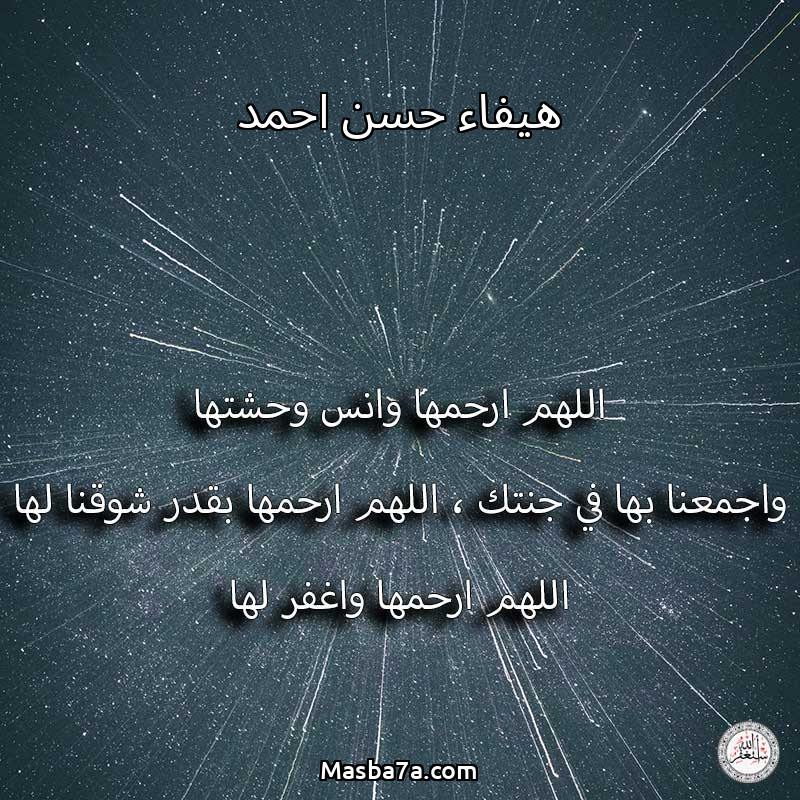 اللهم ارحم ( هيفاء حسن احمد ) وانس وحشتها واجمعنا بها في جنتك ، اللهم ارحمها بقدر شوقنا لها اللهم ارحمها واغفر لها .
