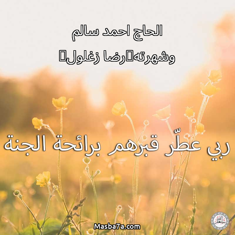 اللهم ارحم ( الحاج احمد سالم وشهرته(رضا زغلول) ) وانس وحشتهم واجمعنا بهم في جنتك ، اللهم ارحمهم بقدر شوقنا لهم اللهم ارحمهم واغفر لهم.