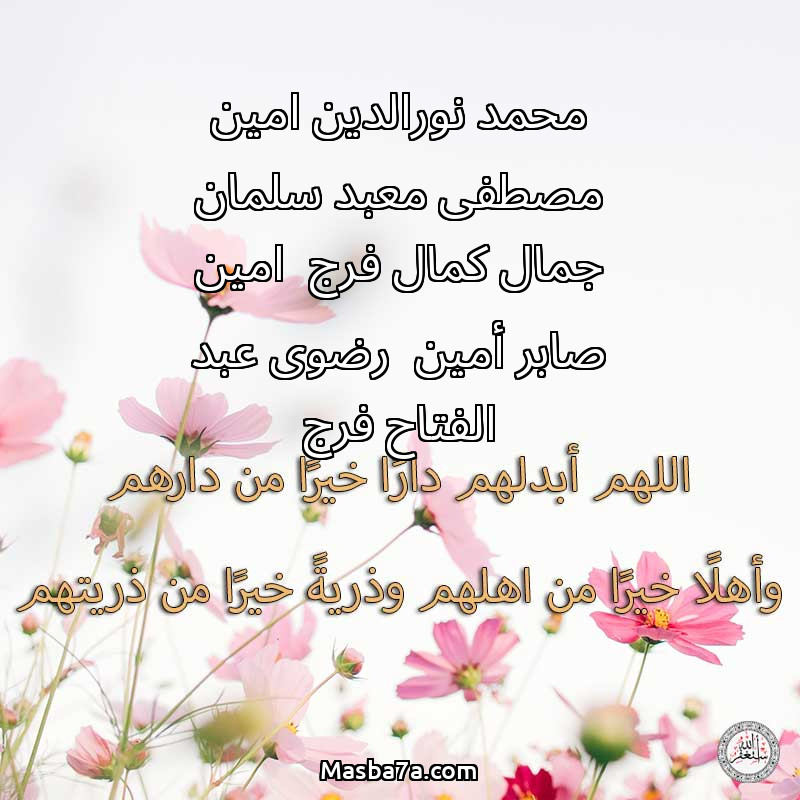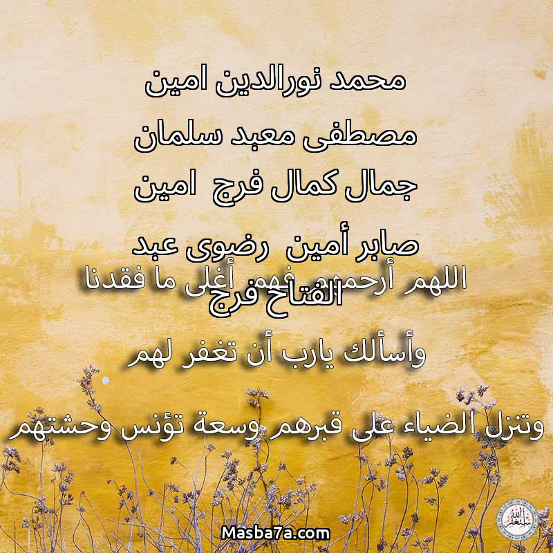 دعاء عن أرواح المرحومين محمد نورالدين امين- مصطفى معبد سلمان- جمال كمال فرج -امين صابر أمين -رضوى عبد الفتاح فرج
