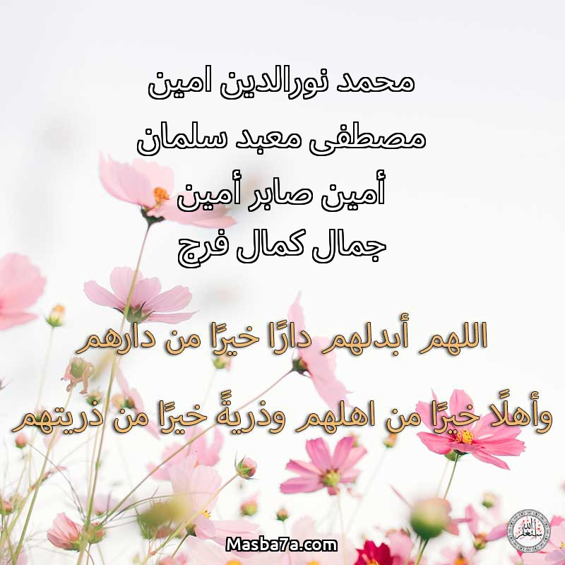 دعاء عن أرواح المرحومين محمد نورالدين امين مصطفى معبد سلمان أمين صابر أمين جمال كمال فرج
