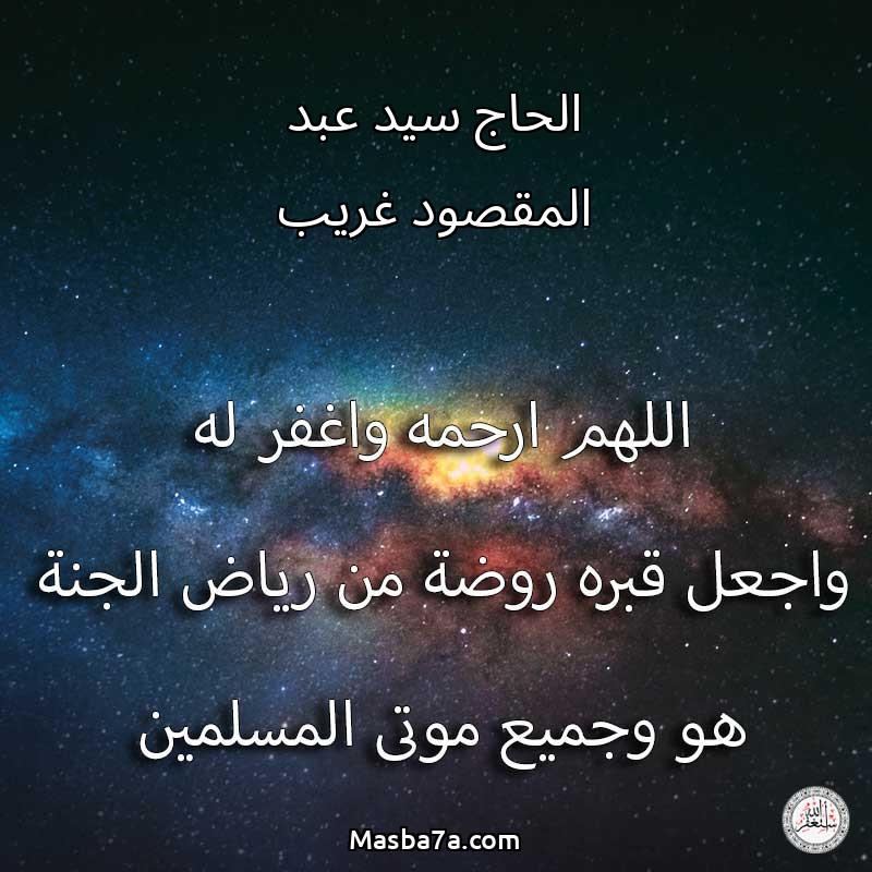 اللهم ارحم ( الحاج سيد عبد المقصود غريب ) وانس وحشته واجمعنا به في جنتك ، اللهم ارحمه بقدر شوقنا له اللهم ارحمه واغفر له .