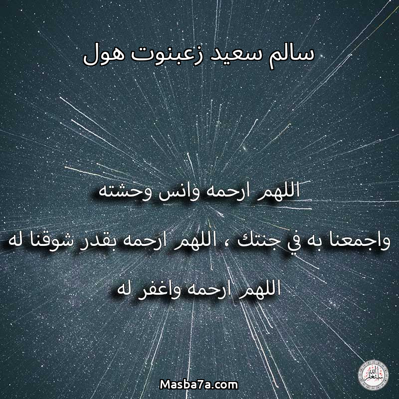 اللهم ارحم ( سالم سعيد زعبنوت هول ) وانس وحشته واجمعنا به في جنتك ، اللهم ارحمه بقدر شوقنا له اللهم ارحمه واغفر له .