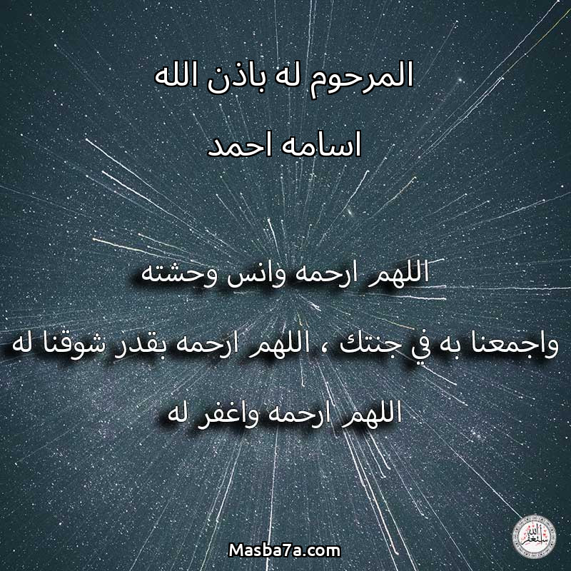 اللهم ارحم ( المرحوم له باذن الله اسامه احمد ) وانس وحشته واجمعنا به في جنتك ، اللهم ارحمه بقدر شوقنا له اللهم ارحمه واغفر له .